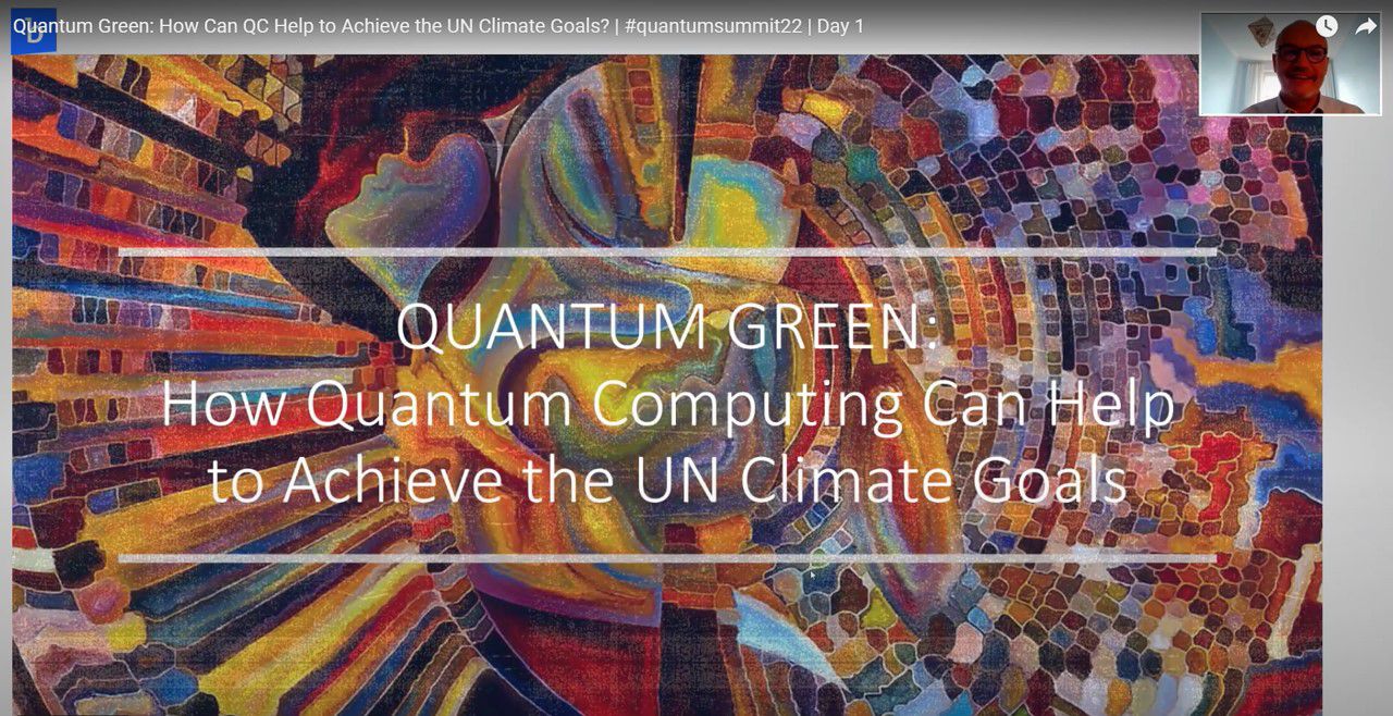 Jan Berger wagt in seinem Vortrag mit dem Titel „Quantum Green: How Can Quantum Computing Help to Achieve the UN Climate Goals?” einige Prognosen, teils auch formuliert als Visionen. Laut Schätzungen wird sich der weltweite Energiebedarf für Computer-Rechenleistungen bis zum Jahr 2030 verdreifachen. Quantencomputer könnten dazu beitragen, den erhöhten Energiebedarf in anderen Bereichen einzusparen. Ansätze sieht er vor allem im Transportbereich und in der Optimierung traditioneller, energieintensiver Industrien. Hier sind völlig neue Möglichkeiten denkbar, zum Beispiel