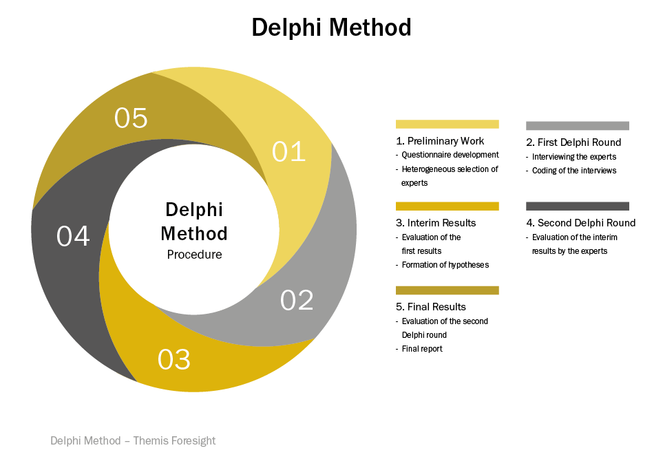 Delphi is a qualitative foresight method in which relevant experts give their assessments of future developments in a multi-stage interview process.