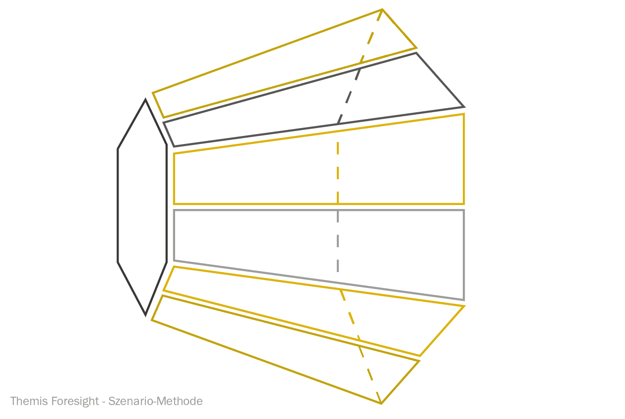 Several futures can usually be derived from the insights gained in the Delphi interviews. Developing scenarios is a suitable method for making these possible futures more manageable. It was developed by Herman Kahn in the 1950s in the context of military and strategic studies. Kahn defines scenarios as narrative descriptions of the future with a focus on causal connections and decision points. The point is not that a scenario is probable. The scenario method helps to imagine futures and to derive from them the necessary steps for today. Peter Schwartz, one of the pioneers in this field, was able to successfully lead Shell through the oil crisis with the help of scenarios.