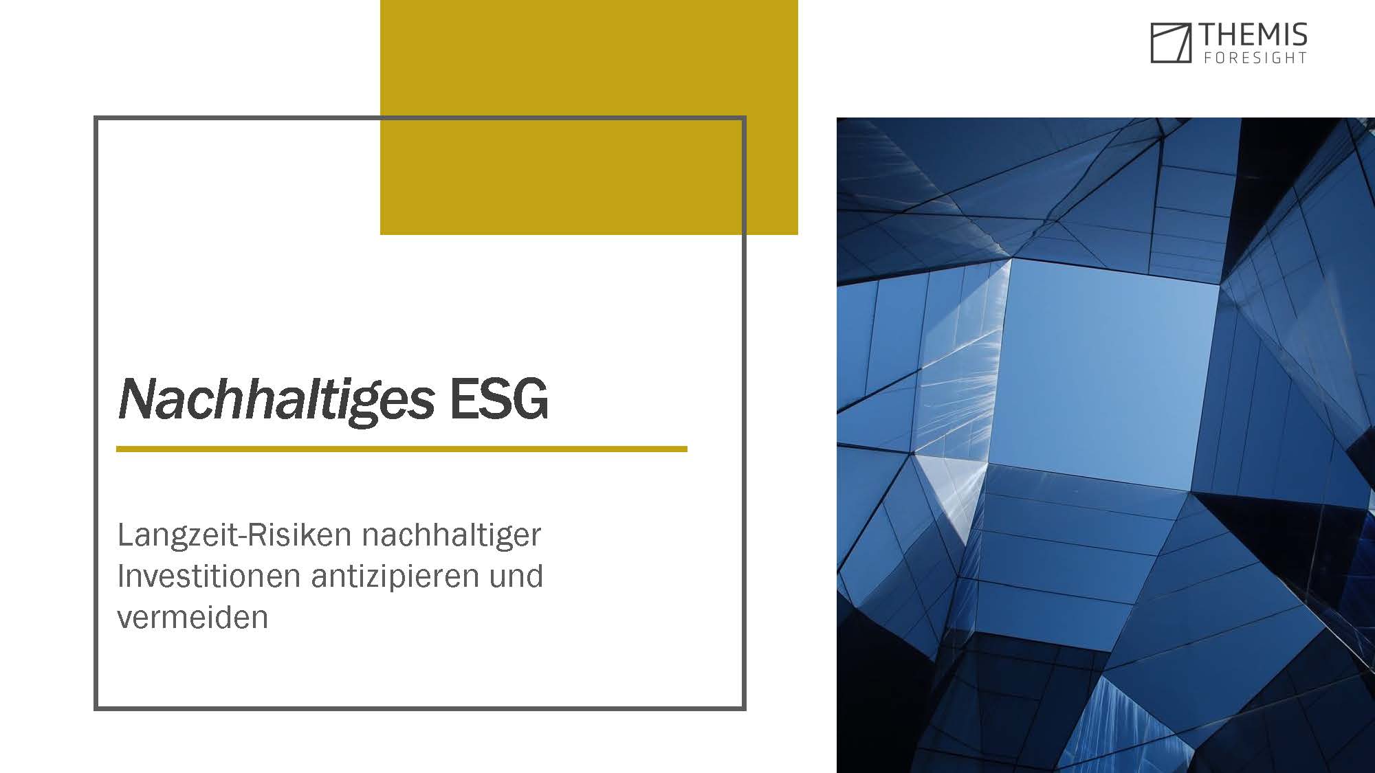 Verlässliche ESG-Kriterien werden für Unternehmen und Investoren aufgrund von regulatorischen Anforderungen immer wichtiger. Diese ESG-Aktivitäten sind wichtig und gehen in die richtige Richtung. Jedoch bergen ESG-Anlagen neue Risiken, die heute noch nicht ausreichend gewürdigt werden.