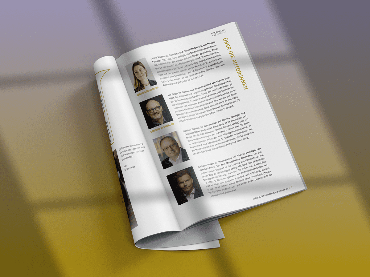 Stöttner, Berger, Brandes, Katzer (2025). Zukunftsszenarien für die Industrie und Industriearbeit in Deutschland. Studie von Themis Foresight GmbH, Berlin. Aufgerufen am ___ auf: www.themis-foresight.com/publications/zukunft-der-industrie-und-industriearbeit