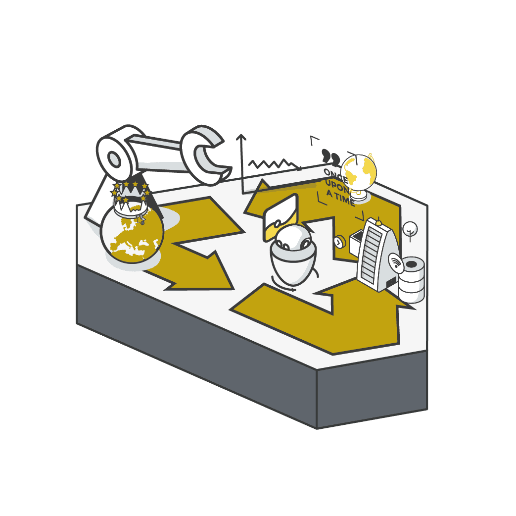 Das „globale Dorf“ Europa ist eine weitgehend in sich geschlossene geografische und ökologische Einheit. Die vereinte wirtschaftliche und politische Union leistet Pionierarbeit in Sachen Kreislaufwirtschaft, modernes Leben innerhalb der planetarischen Grenzen und Alternativen zur Rohstoffgewinnung. Die Innovation floriert und verhindert den wirtschaftlichen Niedergang.