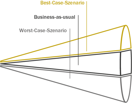 - Business-as-usual, also ein ‚weiter-wie-bisher‘, bei dem aktuelle Trends extrapoliert werden